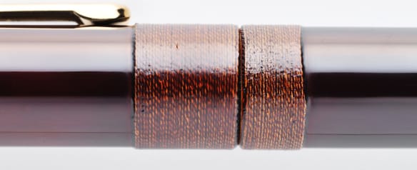 もともとは、漆を染み込ませた糸で糸巻きの割れや亀裂を補強する補修方法だったが、独特の装飾技法でもある。