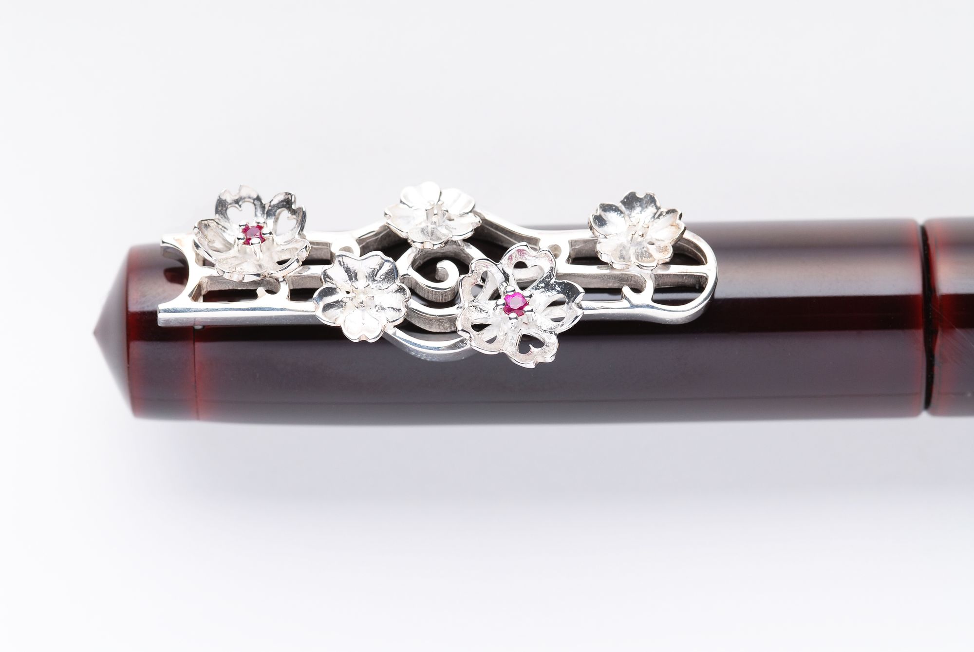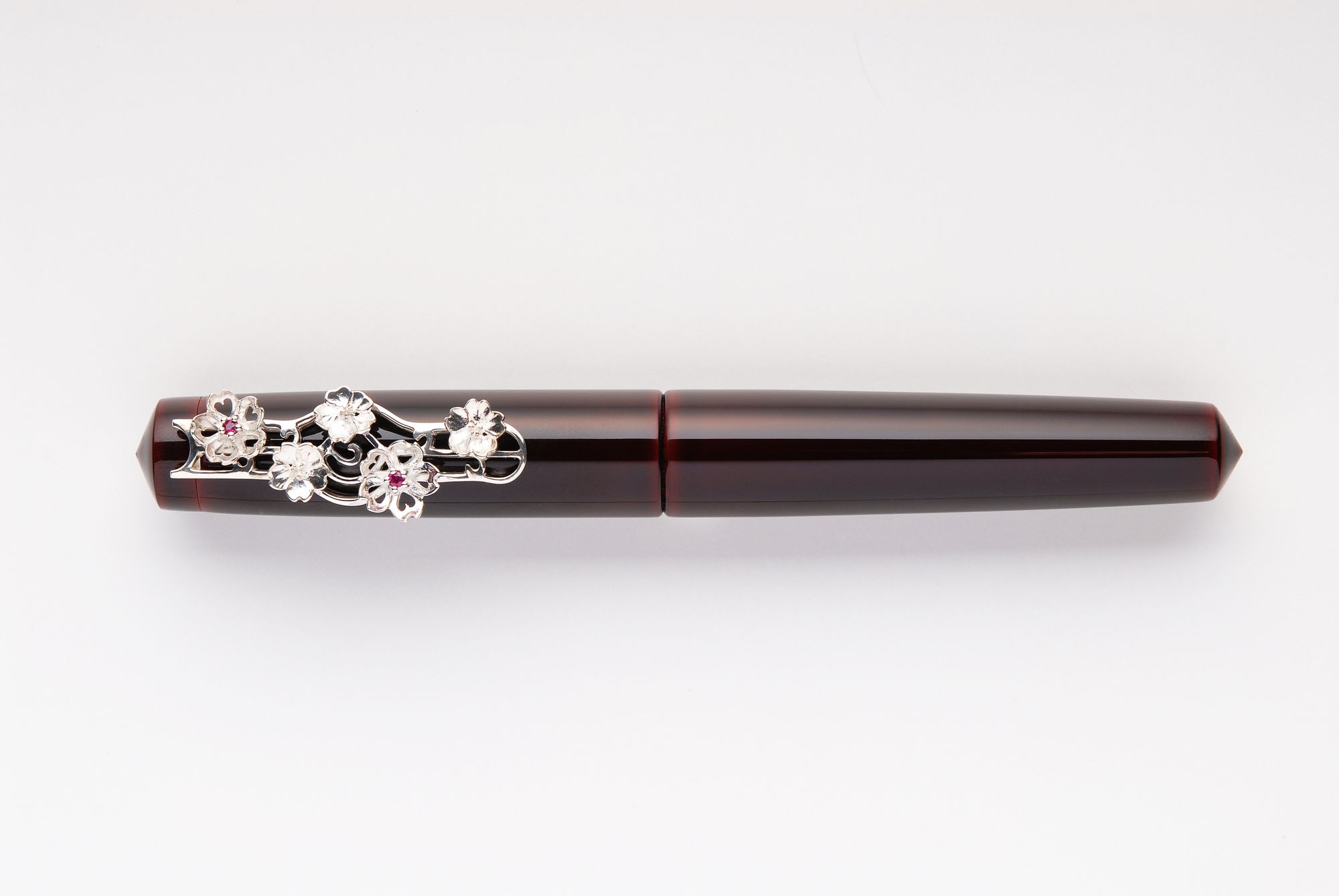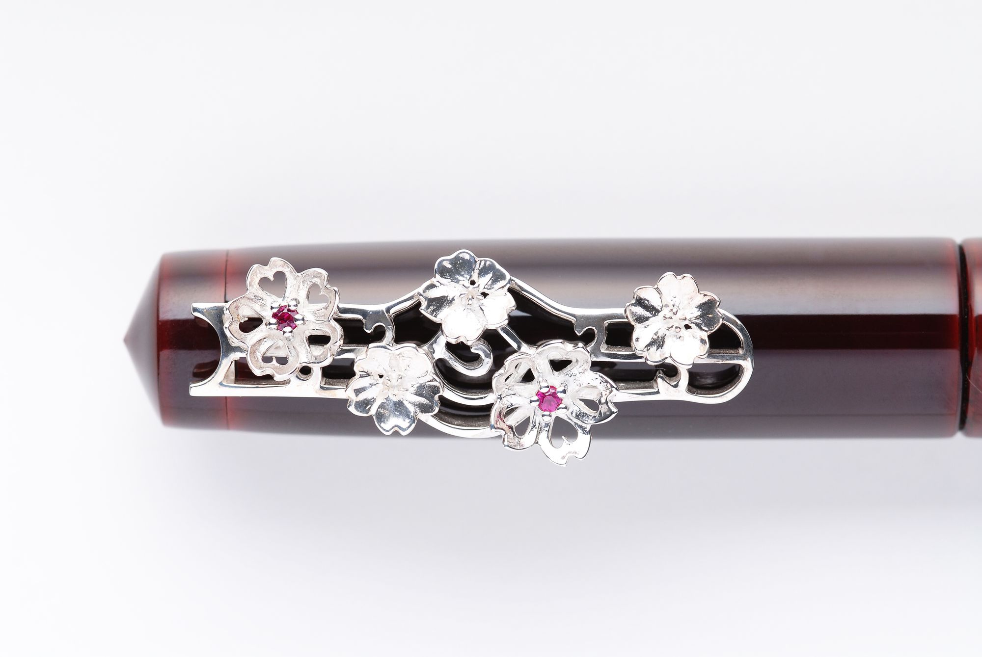 The pictures show a polished version and a rhodium-plated version with red stones.〔Silver 925〕