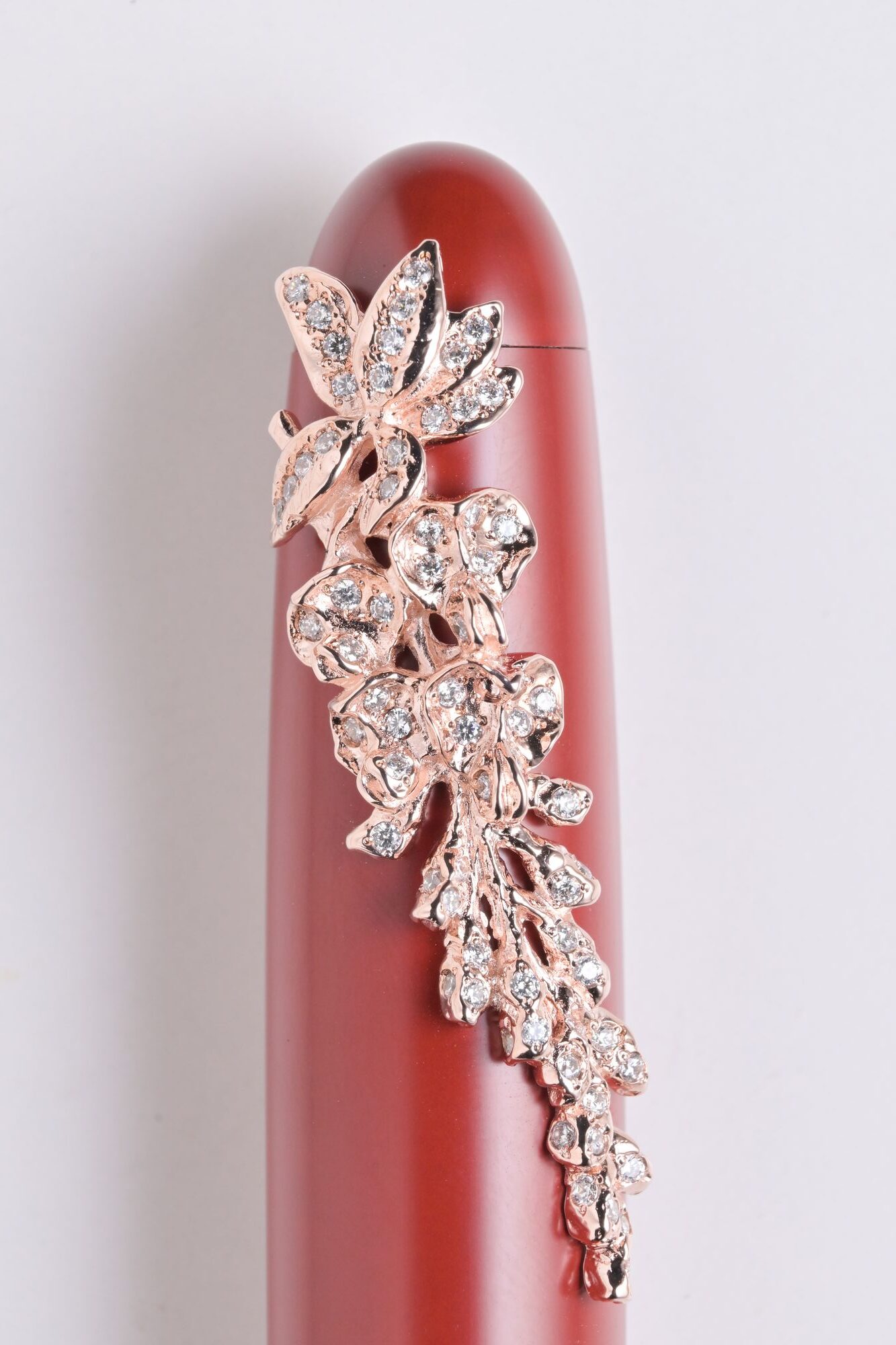 And we present a version that is specially produced pink gold plated with zirconia embedded throughout the wisteria flower. (Please inquire for pricing)