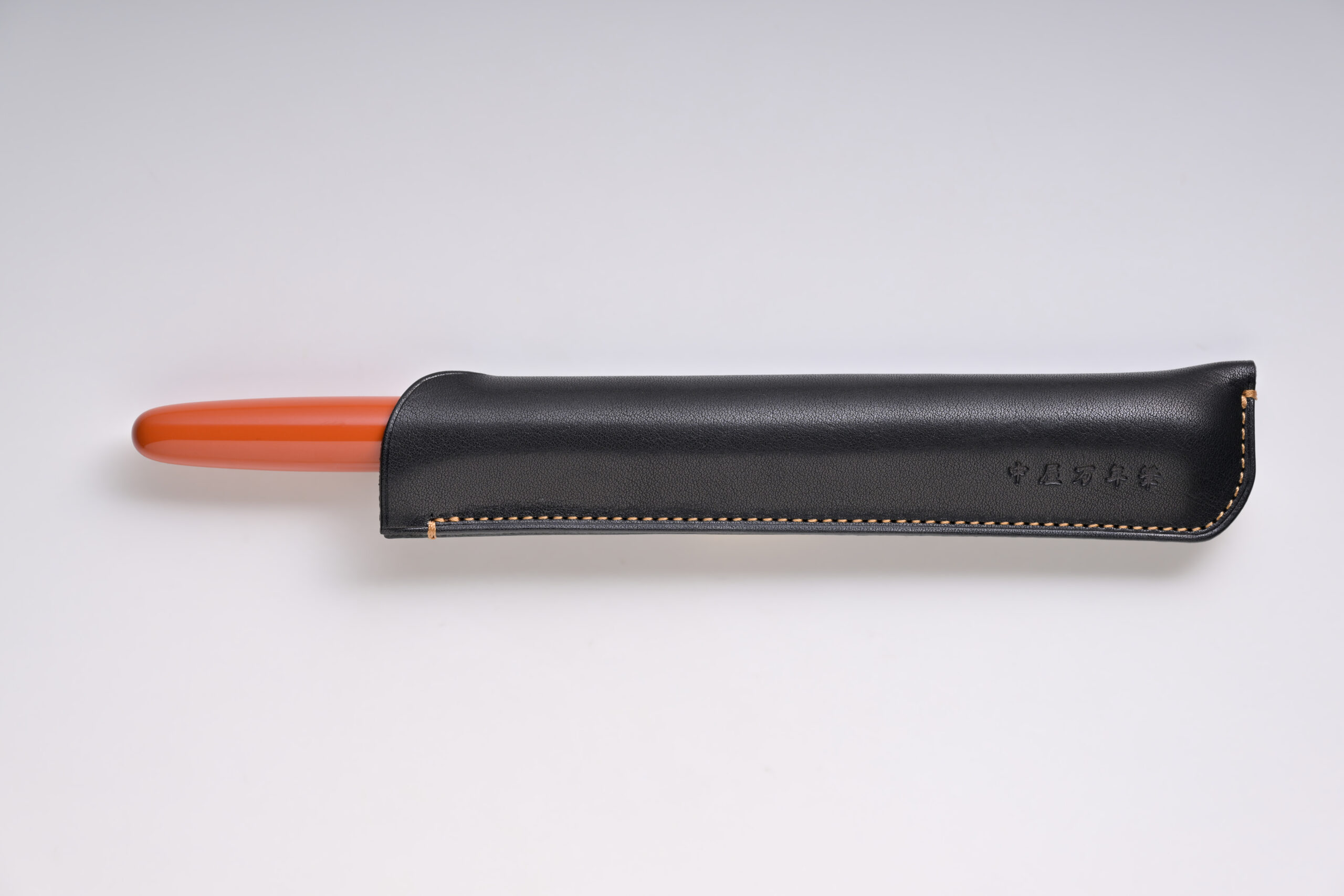 This fountain pen case for one pen is made of Tochigi saddle leather in a luxurious ebony-like black. Carefully finished thread stitches accentuate its individuality.