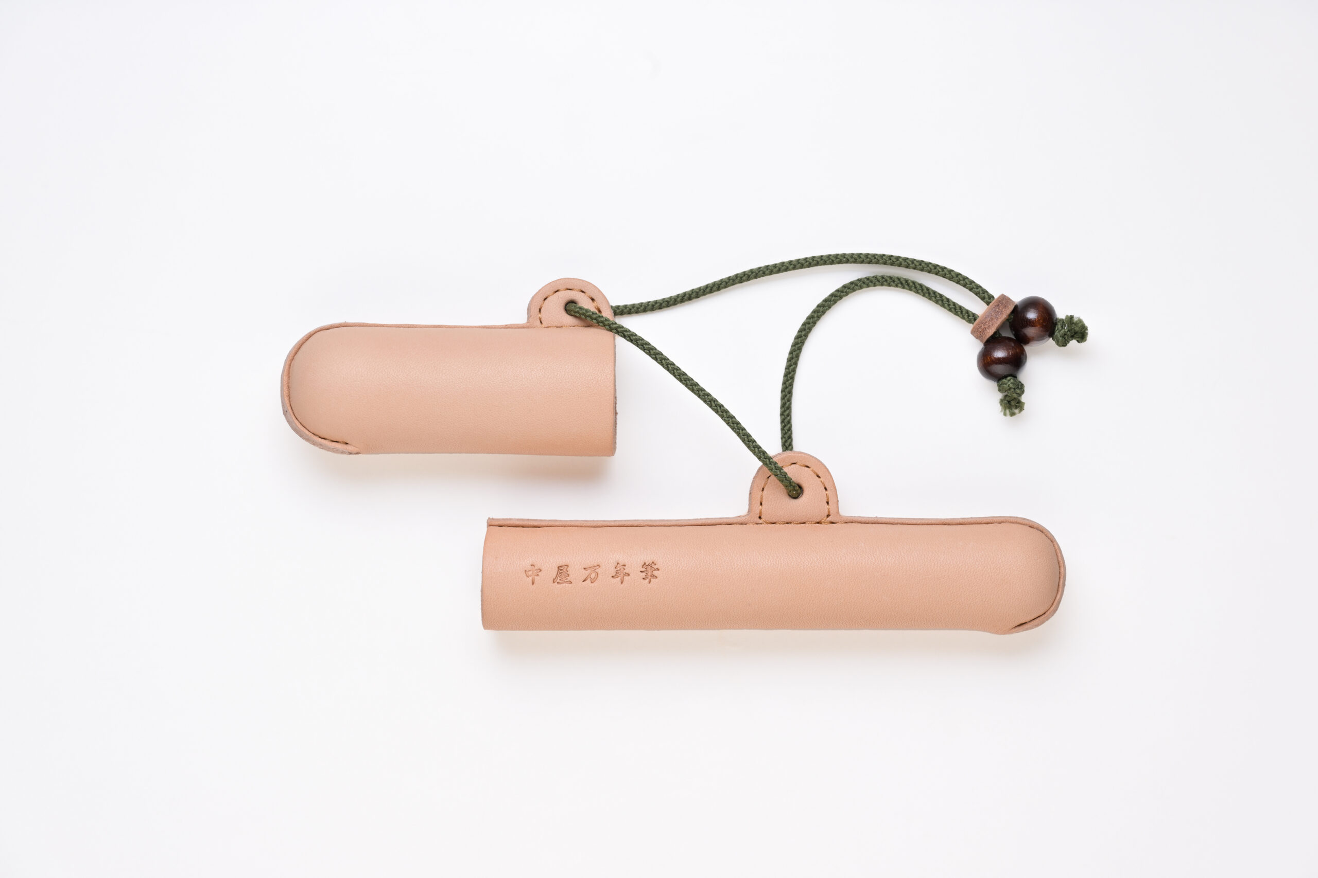 中屋万年筆ロゴ入りの牛革を使用した革製万年筆入れです。